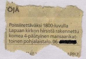 Helsingin Sanomat otti yhteyttä ja halusi tehdä jutun siirretyistä hirsitaloista. Toimittaja kävi lauantaina 10.1. ja juttu tuli ulos